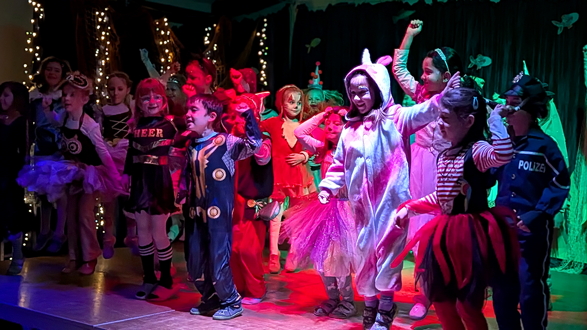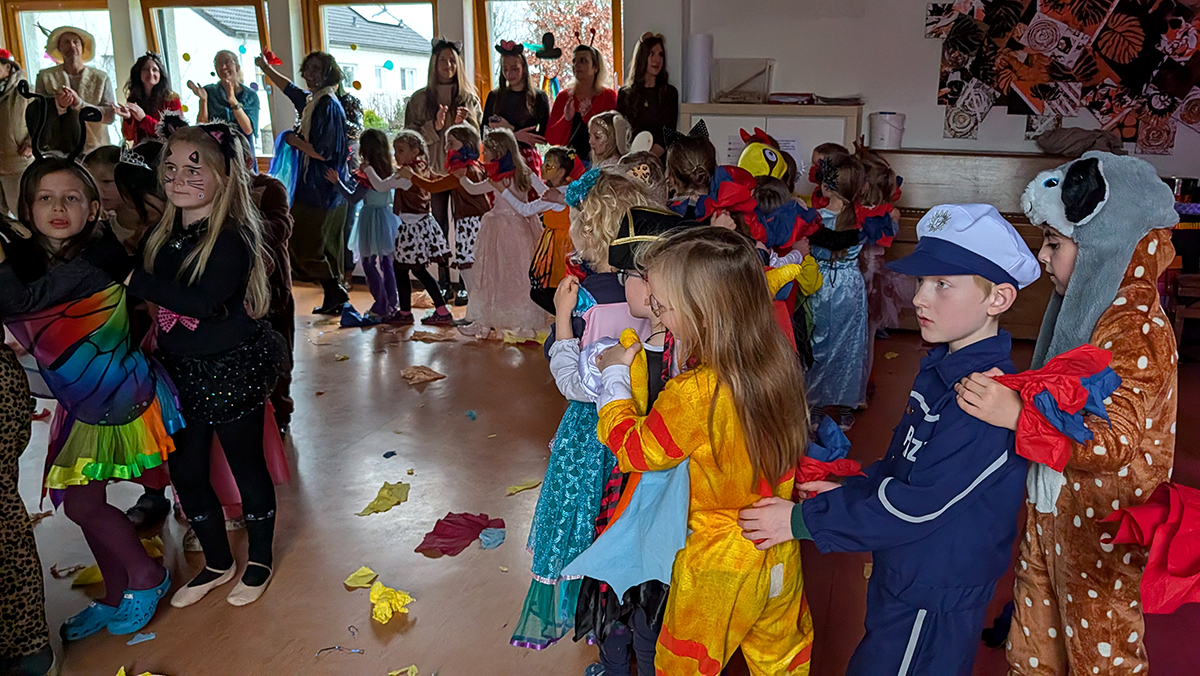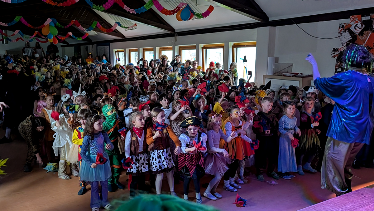 An Karneval wurde bei uns wieder viel getanzt, gesungen und gelacht. Alle Klasse hatte etwas vorbereitet und zeigte mit viel Freude ihre Beiträge. Auch die OGS-MitarbeiterInnen sowie das Kollegium sorgten mit eigenen Auftritten für gute Unterhaltung. Viele Eltern und sogar einige Ehemalige waren unserer Einladung gefolgt und kamen vorbei, sodass das Forum gut besucht war.